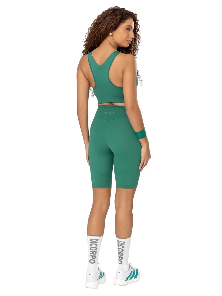 Bermuda Ciclista Recortada, com Bolsos e Cós Alto Duplo