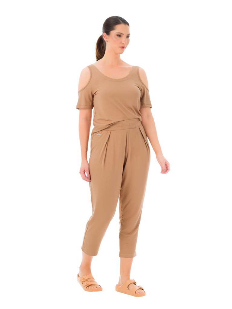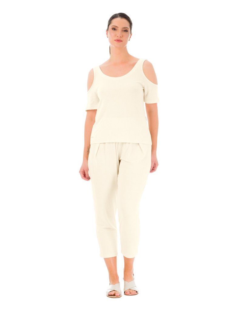 Blusa com Decote U e Ombros Vazados