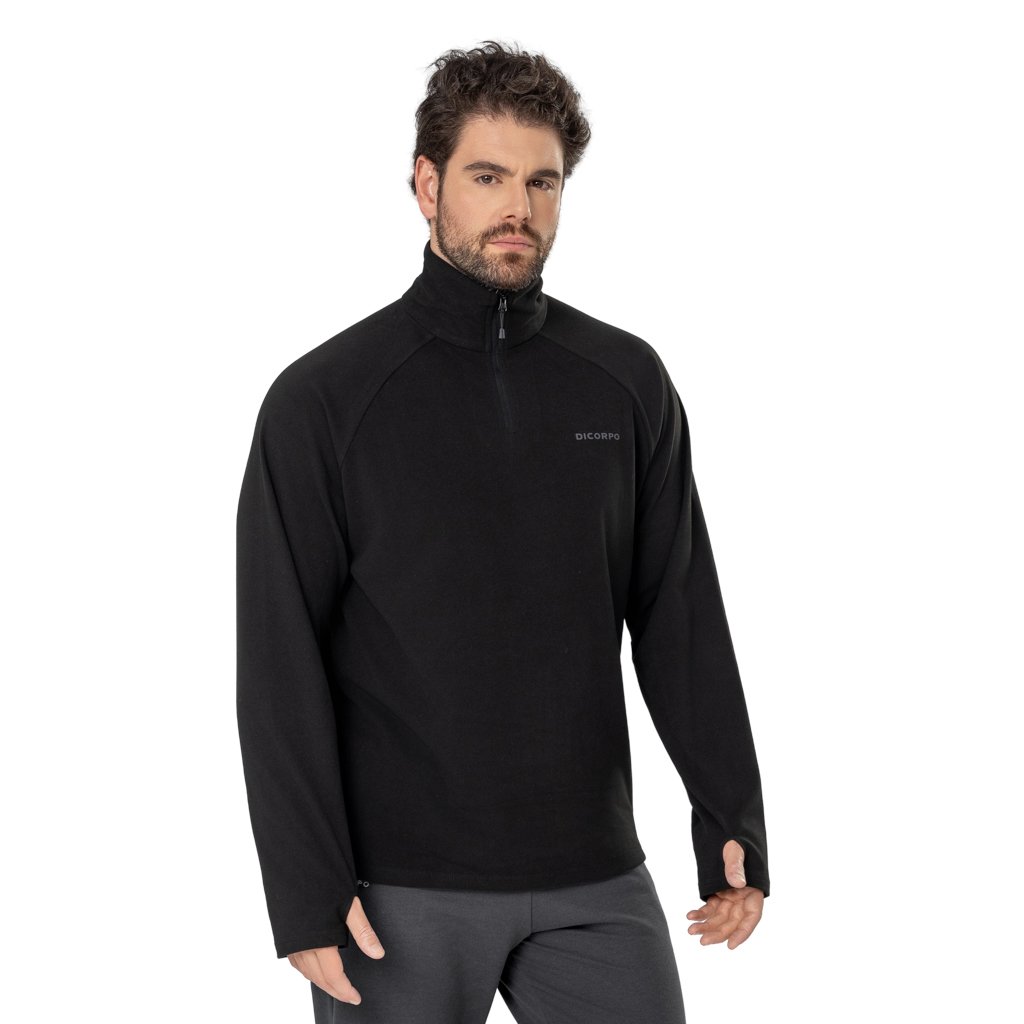 Blusão Térmico Masculino com Zíper na Gola Alta e Mangas com Abertura para Dedos