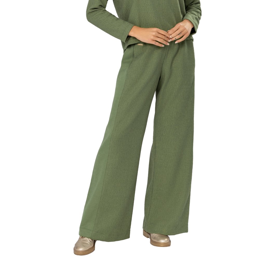 Calça Pantalona Recortada com Bolsos e Elástico na Cintura