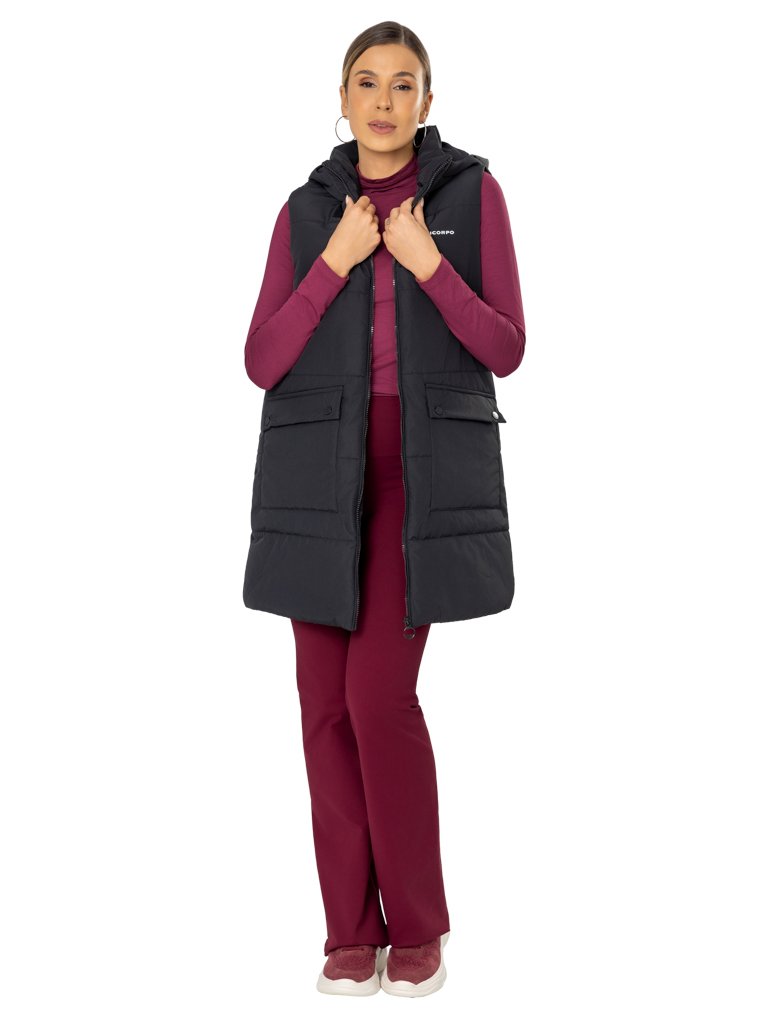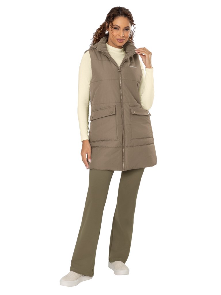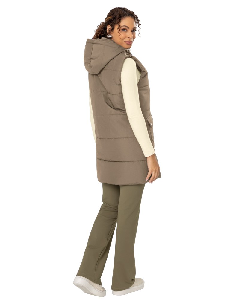 Colete Matelassê ¾, Resistente à Água, com Gola Alta, Capuz e Bolsos Frontais com Lapela