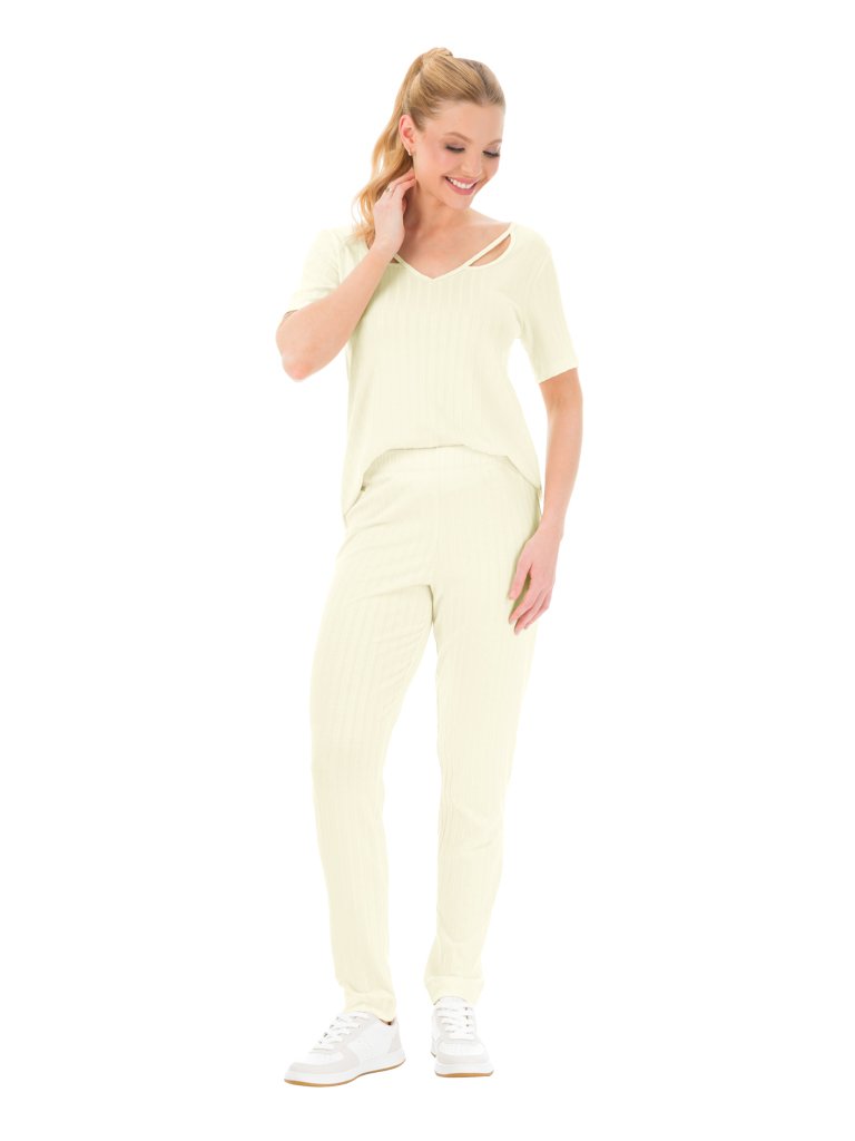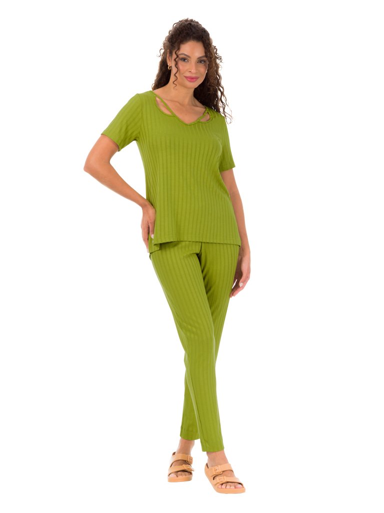 Camiseta com Decote V, Detalhes Vazados e Mullet Curto