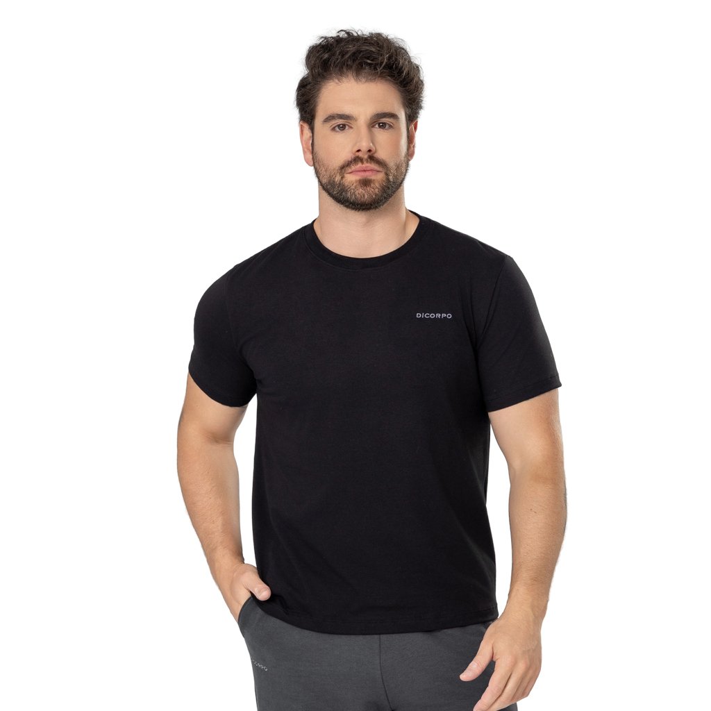 Camiseta Masculina com Decote Careca e Logo Bordado
