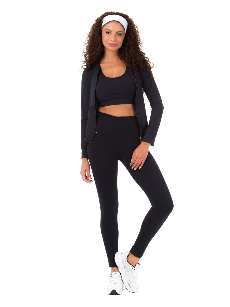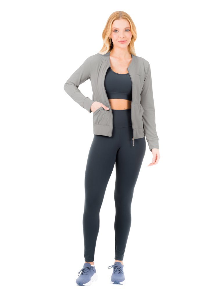 Jaqueta Recortada com Gola Subida e Bolso Canguru