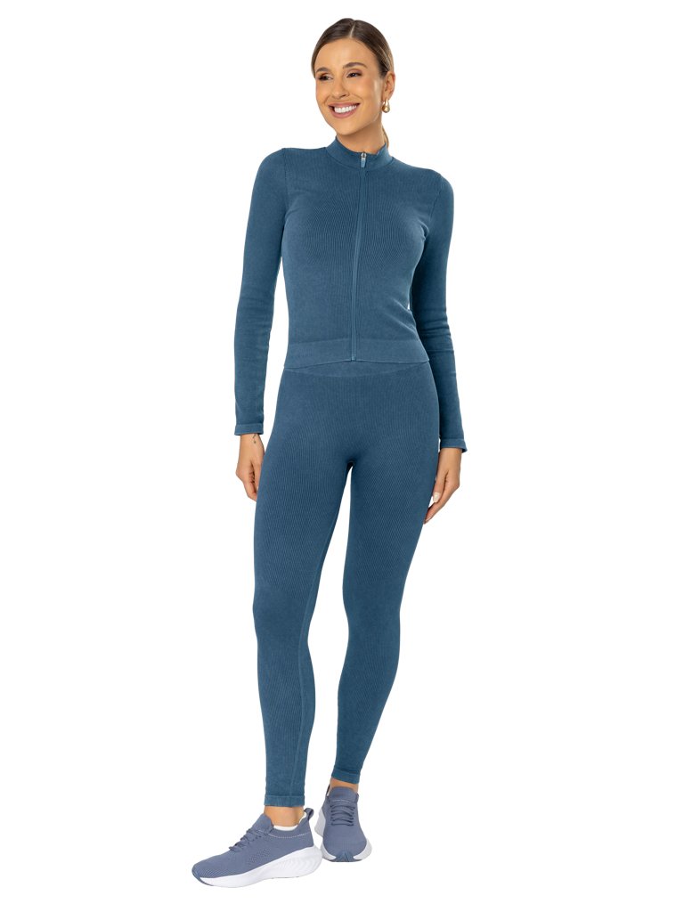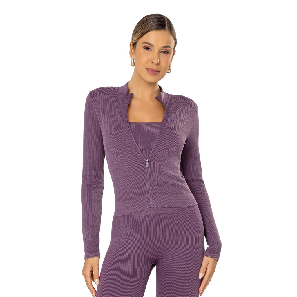 Jaqueta Cropped Seamless com Gola Alta