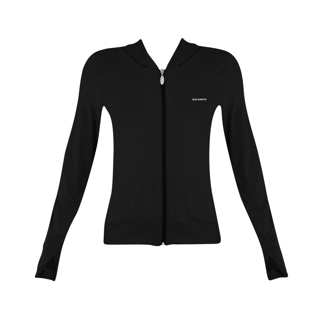 Jaqueta Esportiva Feminina com Capuz, Abertura para o Dedo e Proteção Solar UV50+ | DiCorpo