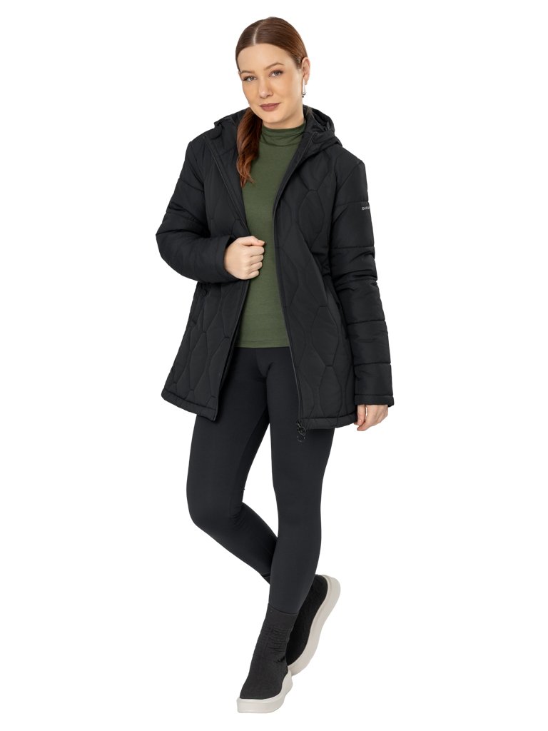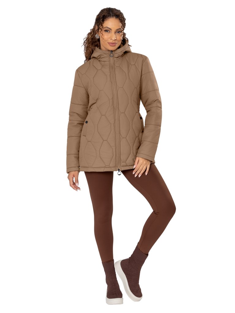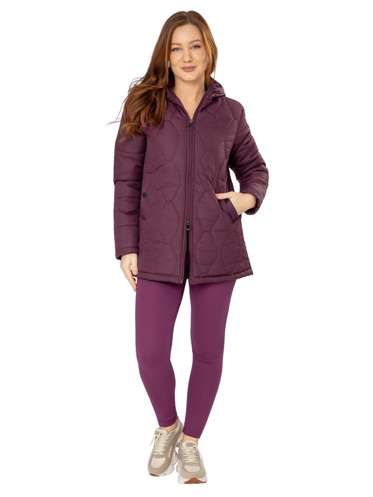 Jaqueta Matelassê ¾, com Capuz e Bolsos Embutidos